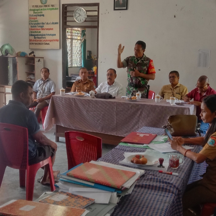 Babinsa Koramil 05/Waingapu Kodim 1601/Sumba Timur, Sertu Matius Bulu Mila menghadiri kegiatan Rapat koordinasi pembangunan RKB (Ruang Kelas Baru) yang bertempat di kantor Kelurahan Temu, Kecamatan Kanatang, Kabupaten SumbaTimur, Rabu (14/06/2023).