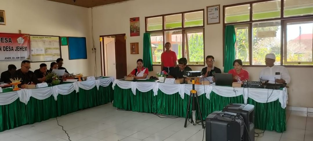 Babinsa Desa Jehem Koramil 1626-03/Tembuku Kodim 1626/Bangli Serda Sang Komang Teg Redana hadiri musyawarah Rencana Kerja Pembangunan Desa (RKPDes) tahunan Tahun 2023 bertempat di Kantor Desa Jehem Tembuku Kec. Tembuku Kabupaten Bangli, Jumat (23/06/2023).